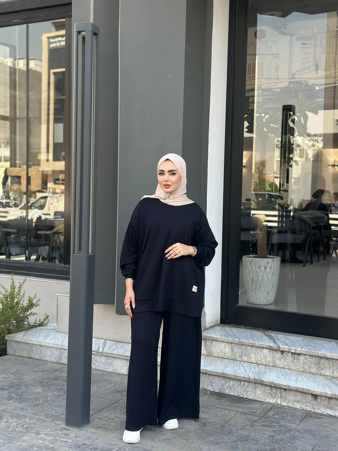 طقم قطعتين (توب + سروال) من قماش مونطوني تركي فاخر 🇹🇷
