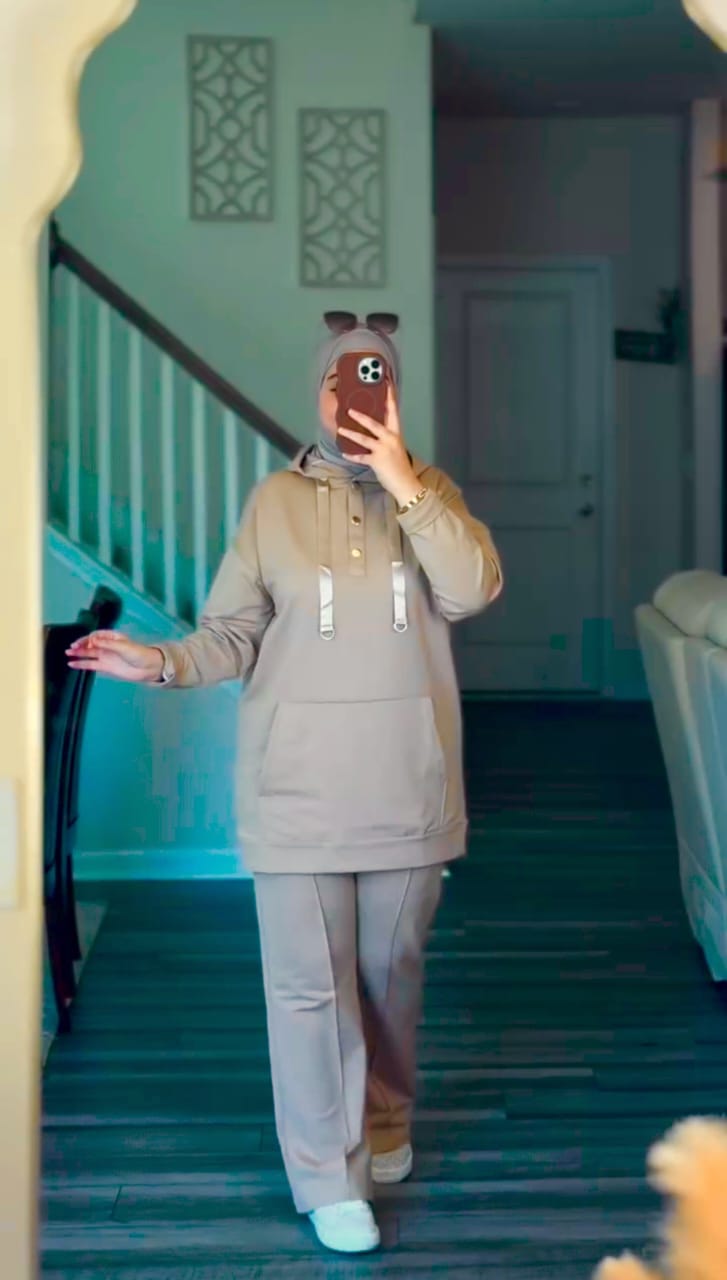 طقم قطعتين (توب + سروال مع قب) من قماش مونطوني تركي فاخر 🇹🇷